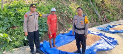Pastikan Jagung Kering hingga Kadar 13 Persen, Polsek Mamuju Dampingi Petani Penjemuran Jagung
