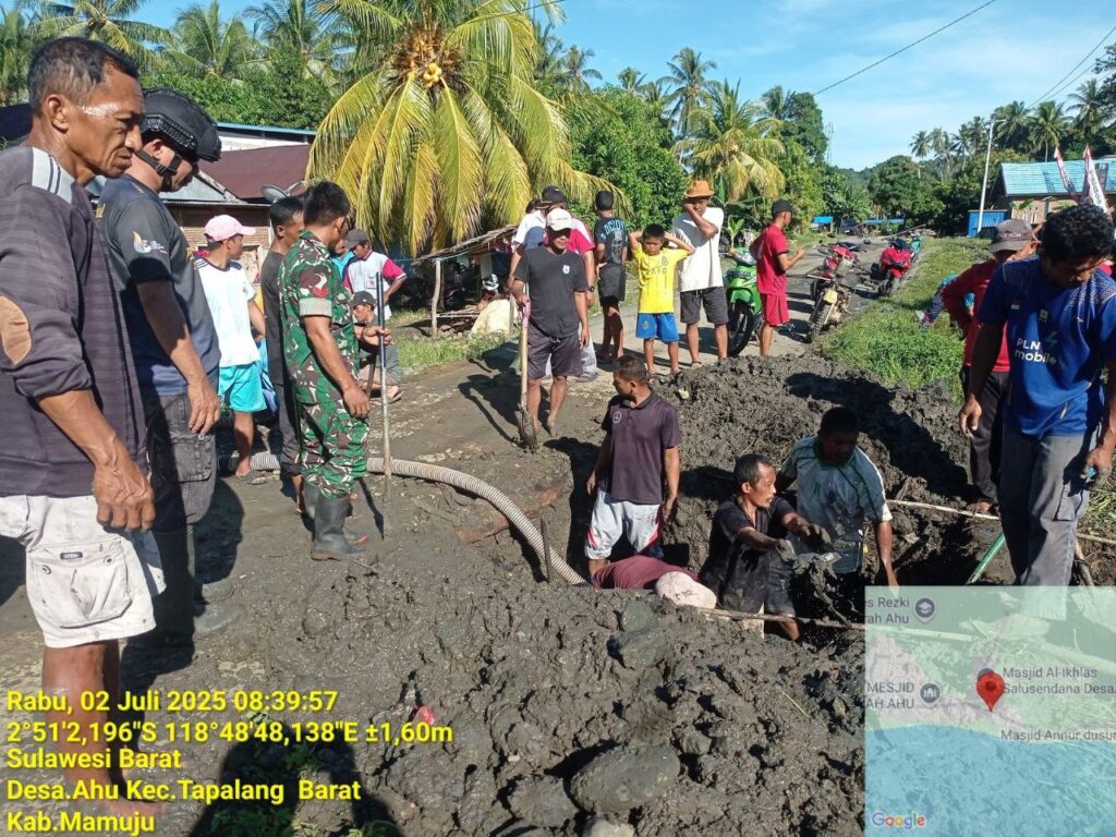 MAMUJU, SULBAR INFO – Dalam upaya mengantisipasi terjadinya banjir dan menjaga kebersihan lingkungan, Babinsa Koramil 1418-02/Tapalang melaksanakan karya bakti perbaikan parit yang tersumbat akibat tumpukan sampah dan endapan lumpur di Desa Ahu, Kecamatan Tapalang, Kabupaten Mamuju, Rabu (2/7/2025).