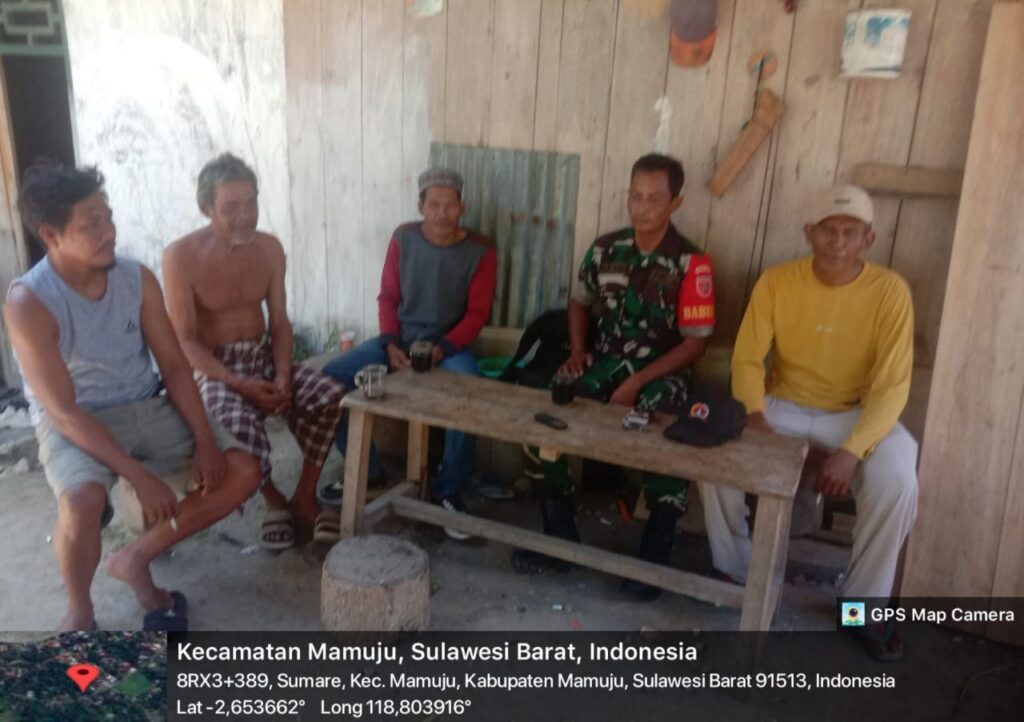 MAMUJU, SULBAR INFO – Dalam rangka mempererat hubungan dengan masyarakat serta memperkuat semangat kebangsaan, anggota Koramil 1418-01/Mamuju, Sertu Hasbi, yang juga Babinsa Desa Sumare, Kecamatan Simboro, melaksanakan pembinaan wilayah yang dilanjutkan dengan kegiatan komunikasi sosial (komsos) bersama warga setempat, Rabu (2/7/2025).