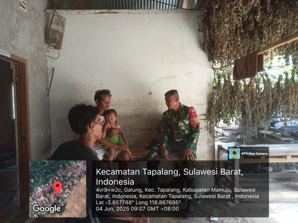 Mamuju — Dalam upaya meningkatkan kualitas pembinaan teritorial di wilayah binaan, Bintara Pembina Desa (Babinsa) Koramil 1418-02/Tapalang, Koptu Muh Asri, melaksanakan kegiatan Puldata (Pengumpulan Data Teritorial) di Kecamatan Tapalang, Kabupaten Mamuju. Rabu (4/6/2025).