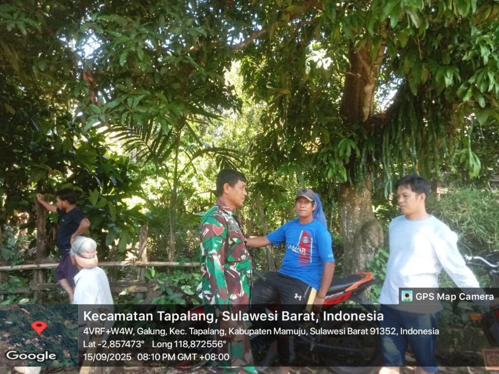 Mamuju, – Babinsa Koramil 1418-02/Tapalang, Koptu Asri, melaksanakan kegiatan Pengumpulan Data Teritorial (Puldata) di wilayah Kecamatan Tapalang, Kabupaten Mamuju. Kegiatan ini bertujuan memperbarui data kewilayahan sekaligus mempererat komunikasi dengan masyarakat setempat. Senin (15/9/2025).
