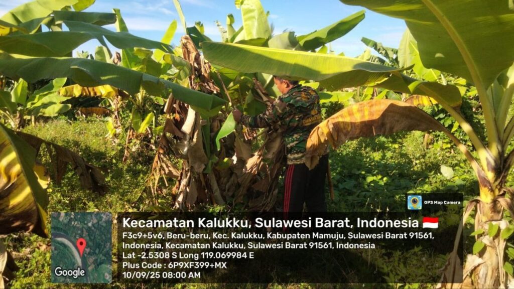 Mamuju – Babinsa Koramil 1418-03/Kalukku melaksanakan kegiatan perawatan ketahanan pangan di lahan Korem 142/Tatag yang berada di Dusun Taraweh, Desa Beru-beru, Kecamatan Kalukku, Kabupaten Mamuju. Perawatan kali ini difokuskan pada tanaman pisang cavendis dan pepaya yang menjadi salah satu komoditas unggulan dalam program ketahanan pangan di wilayah tersebut. Rabu (10/9/2025).