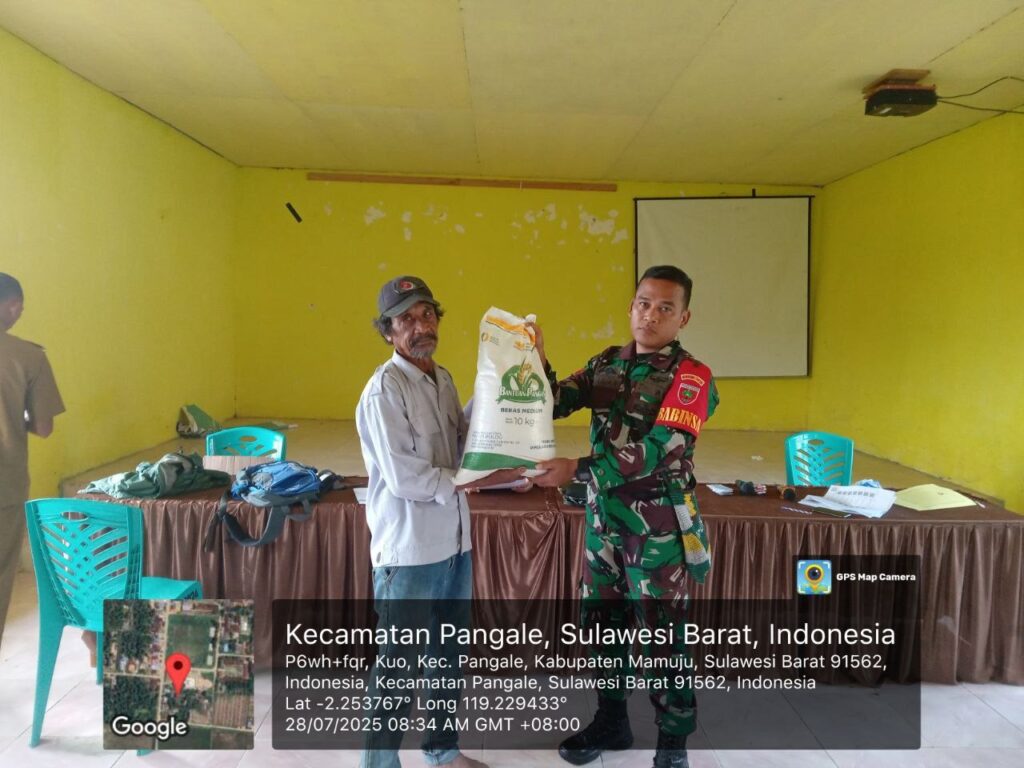 Mamuju Tengah, – Dalam rangka mendukung program pemerintah dalam menjaga ketahanan pangan dan membantu masyarakat yang membutuhkan, Babinsa Koramil 1418-04/Budong Budong, Koptu Saman, melaksanakan kegiatan Komunikasi Sosial (Komsos) sekaligus pendampingan penyaluran Bantuan Pangan (Ban Pan) di Desa Kuo, Kecamatan Pangale, Kabupaten Mamuju Tengah. Selasa (29/7/2025).