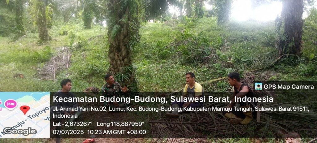 Mamuju Tengah – Dalam upaya memperkuat peran TNI di tengah masyarakat, Babinsa Desa Lumu, Kecamatan Budong Budong, Kabupaten Mamuju Tengah, Kopda Hendri dari Koramil 1418-04/Budong Budong melaksanakan pembinaan wilayah yang dilanjutkan dengan komunikasi sosial (Komsos) bersama warga setempat. Senin (7/7/2025).