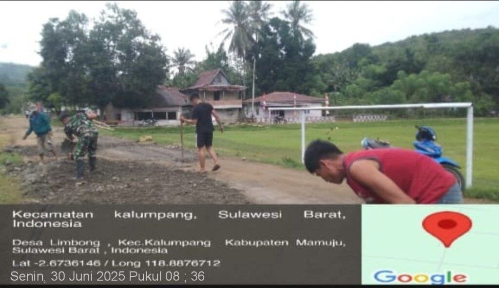 MAMUJU, SULBAR INFO, – Dalam upaya meningkatkan aksesibilitas dan kelancaran transportasi masyarakat, Babinsa Koramil 1418-05/Kalumpang melaksanakan kegiatan karya bakti perbaikan jalan di Desa Limbong, Kecamatan Kalumpang, Kabupaten Mamuju. Senin (30/6/2025).