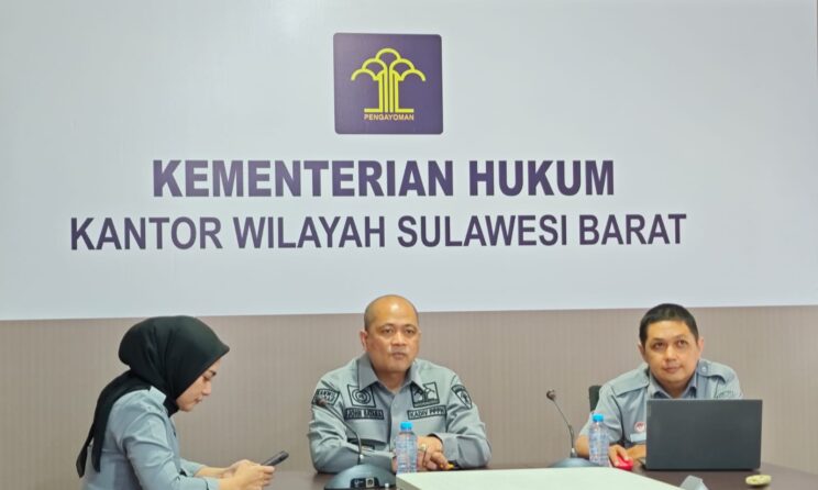 Mamuju – Kadiv P3H, John Batara Manikallo mewakili Kakanwil Kemenkum Sulbar, Sunu Tedy Maranto bersama sejumlah jajaran menghadiri Diskusi Stategi Kebijakan yang dilaksanakan oleh Kanwil Kemenkum Sumatera Barat secara virtual di ruang Rapat Baharuddin Lopa. (8/9)