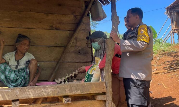Mamuju – Bhabinkamtibmas Polsek Mamuju, Brigpol Rahmat memberikan bantuan paket sembako kepada seorang anak penderita stunting di Desa Salletto, Kecamatan Simboro, Kabupaten Mamuju, Selasa, 29 Juli 2025