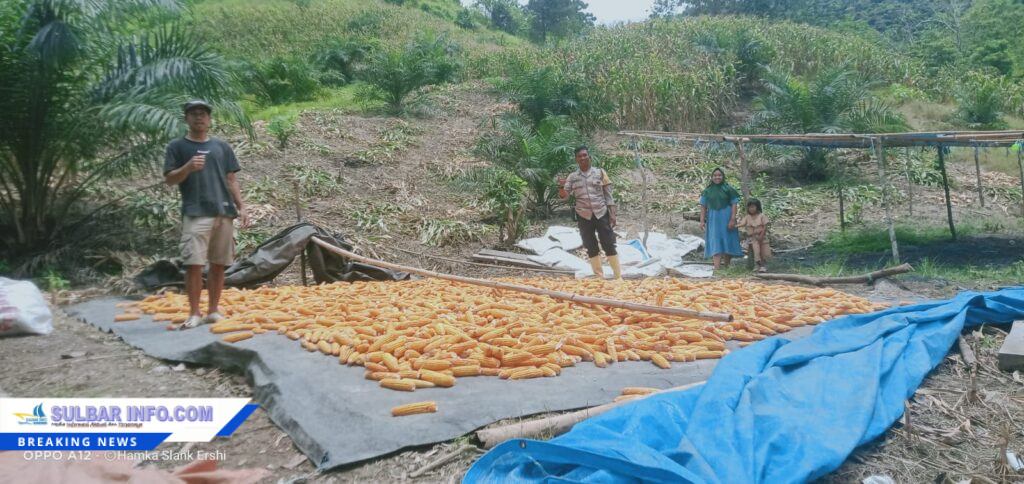 Bhabinkamtibmas Polsek Tapalang Dampingi Warga Keringkan Jagung Hingga Capai Kadar 13 Persen