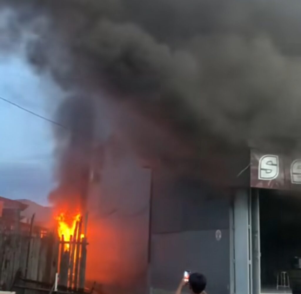 sesuai yang di Posting beberapa akun media sosial facebook warga juga memayngkan siarn langaun bahwa yang kebakaran salah satu. toko bagunan Ahong Pasar Lama.