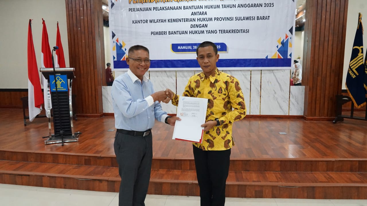 Berita Baru Info Sulawesi Barat KEMENTRIAN HUKUM Berita Baru Info Sulawesi Barat KEMENTRIAN HUKUM Kakanwil Kemenkum Sulbar Tandatangani Adendum Kontrak Bantuan Hukum dan Bekali Calon Penerima PJA 2025 August 28, 2025 • Mamuju, 28 Agustus 2025 – Kantor Wilayah (Kanwil) Kementerian Hukum (Kemenkum) Sulawesi Barat melaksanakan pendandatanganan...