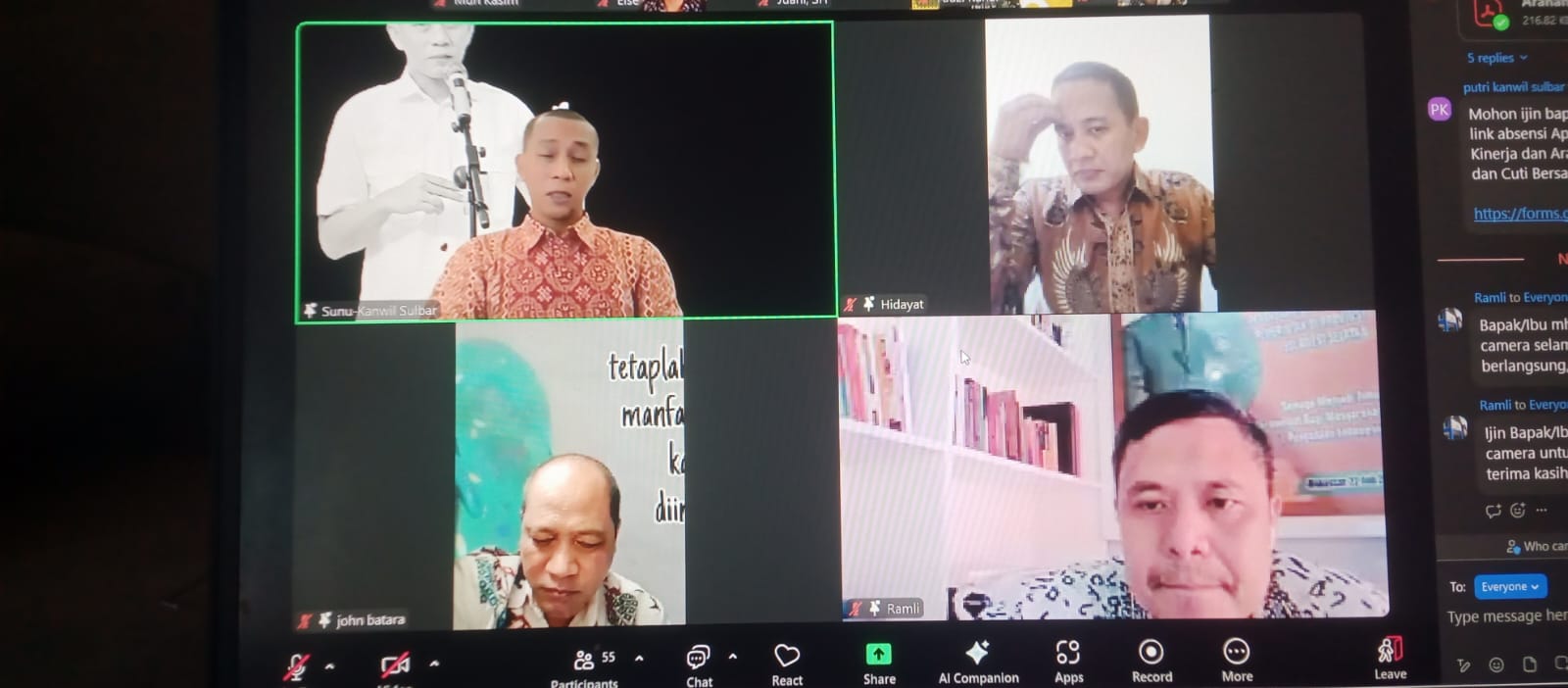 Berita Baru News Berita Baru News Gelar Apel Virtual, Kakanwil Kemenkum Sulbar Apresiasi Seluruh Jajaran Selama Pola Kerja Fleksibel March 27, 2025 • MAMUJU, SULBAR INFO – Kepala Kantor Wilayah Kementerian Hukum (Kanwil Kemenkum) Sulawesi Barat, Sunu Tedy...