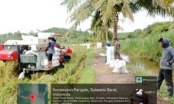 Bentuk Nyata Dukungan TNI Terhadap Ketahanan Pangan, Babinsa Koramil 1418-04/Budong Budong Panen Padi Bersama Warga