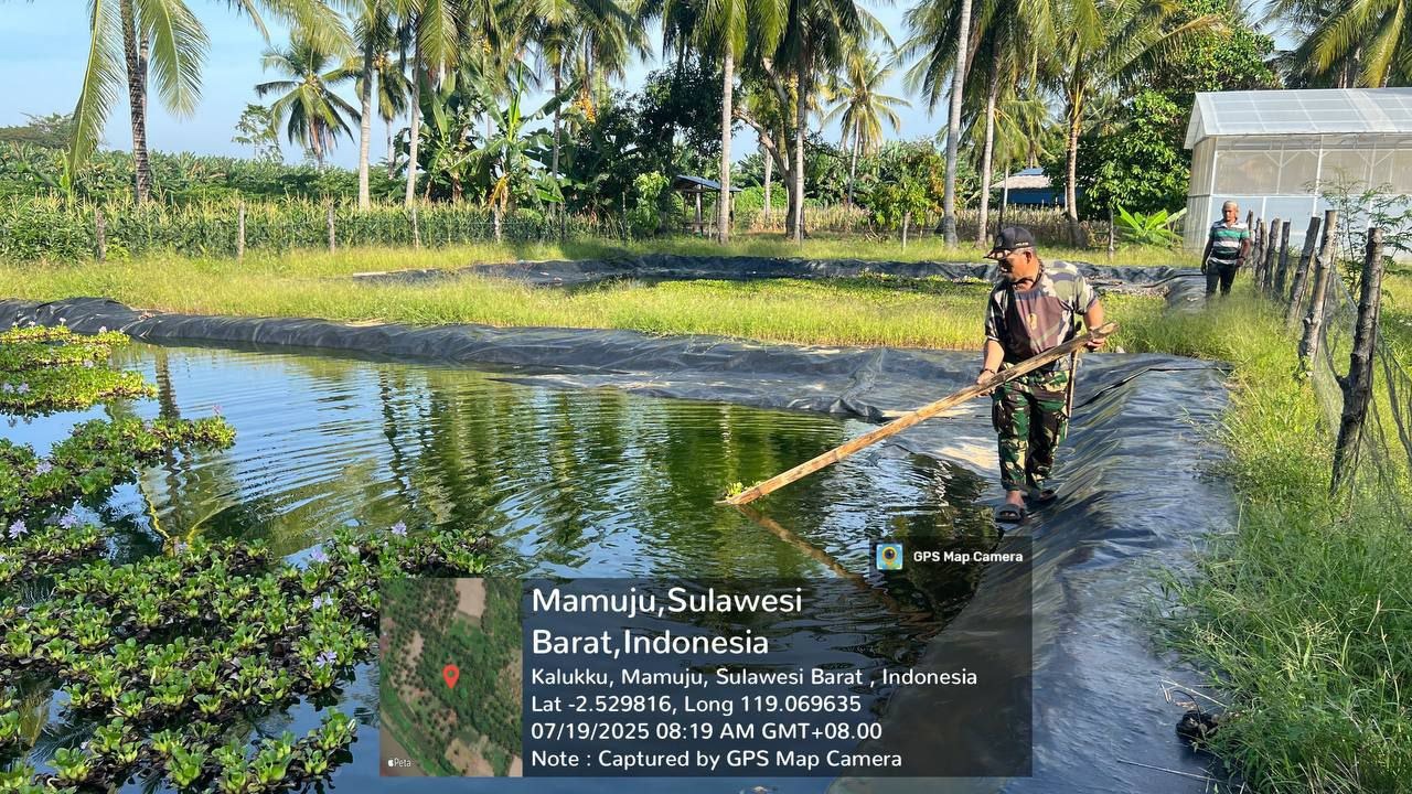Babinsa Koramil 1418-03/Kalukku Rawat Tanaman Cabai dan Bersihkan Kolam Ikan Nila di Lahan Korem