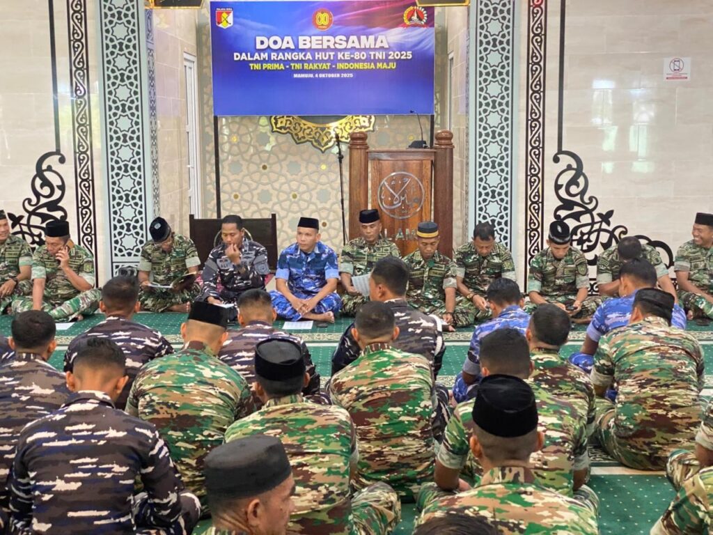 Mamuju – Tentara Nasional Indonesia (TNI) genap berusia 80 tahun pada Minggu (5/10/2025), dengan mengusung tema “TNI Prima, TNI Rakyat, Indonesia Maju”. Menyambut momentum bersejarah ini, Korem 142/Tatag bersama Kodim 1418/Mamuju melaksanakan doa bersama yang diikuti sekitar 150 personel gabungan dari tiga matra TNI. Sabtu (4/10/2025).