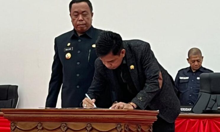Rapat paripurna ditutup dengan penandatanganan dokumen persetujuan bersama oleh pimpinan DPRD Sulbar dengan Asisten I Setda Sulbar mewakili Gubernur Sulbar. (Rls)