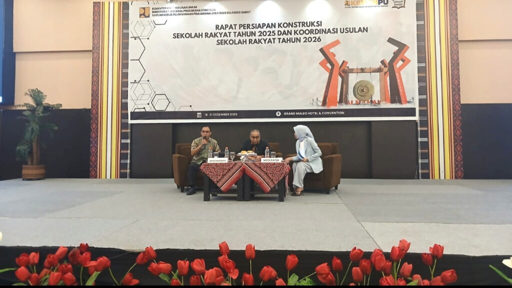 MAMUJU, SULBAR INFO — Dinas Sosial Provinsi Sulawesi Barat menghadiri Rapat Persiapan Konstruksi Pembangunan Sekolah Rakyat Tahun 2025 yang digelar di Hotel d’Maleo, Mamuju, Sabtu (20/12/2025).