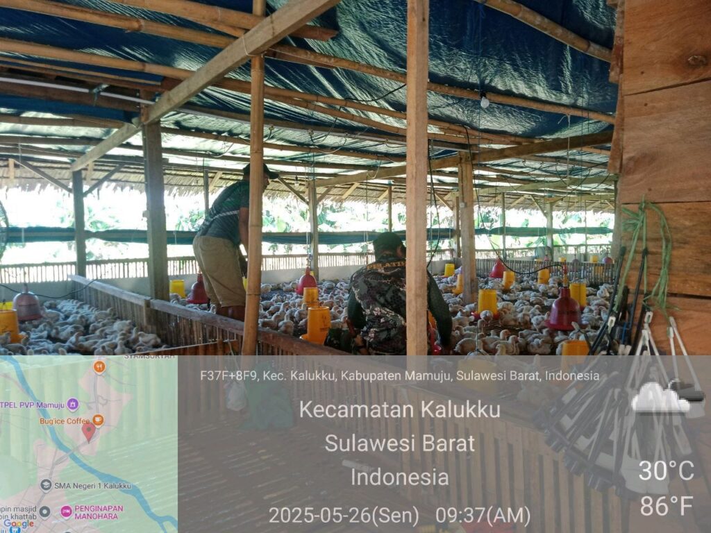 MAMUJU — Dalam upaya mendukung program ketahanan pangan dan pemberdayaan lahan produktif, anggota Koramil 1418-03/Kalukku melaksanakan kegiatan perawatan ikan nila dan ayam potong yang berada di lahan milik Korem 142/Tatag di Desa Beru-beru, Kecamatan Kalukku, Kabupaten Mamuju. Senin (26/5/2025).