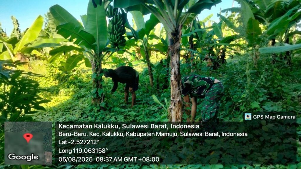 Mamuju — Dalam rangka mendukung program ketahanan pangan nasional, Babinsa Koramil 1418-03/Kalukku melaksanakan kegiatan perawatan tanaman lombok dan pisang cavendish yang berada di lahan milik Korem 142/Tatag, tepatnya di Dusun Taraweh, Desa Beru-beru, Kecamatan Kalukku, Kabupaten Mamuju. Selasa (5/8/2025).
