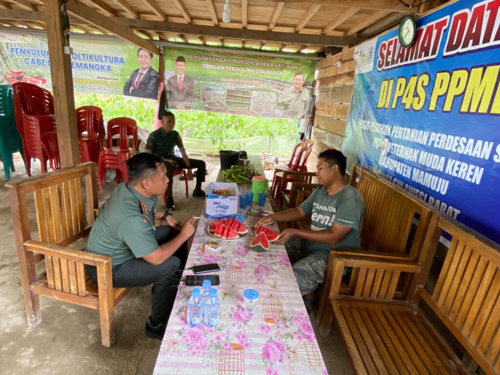 Ditengah kesibukannya sebagai Dandim 1418/Mamuju, Letkol Inf Andik Siswanto menyempatkan diri mengunjungi lahan Pusat Pelatihan Pertanian Perdesaan Swadaya Petani Peternak Muda Keren Kab. Mamuju.