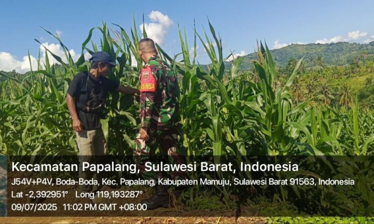 Mamuju – Dalam rangka mendukung program ketahanan pangan nasional, Babinsa Koramil 1418-03/Kalukku melaksanakan pendampingan langsung kepada petani di wilayah Desa Boda-Boda, Kecamatan Papalang, Kabupaten Mamuju. Rabu (9/7/2025).