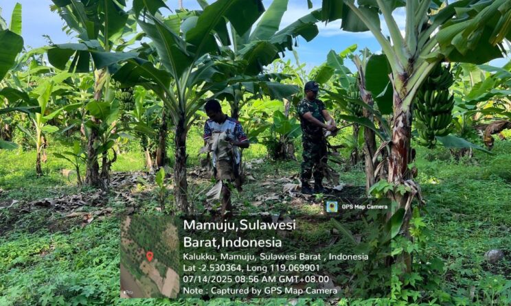 Mamuju — Dalam upaya memperkuat ketahanan pangan di wilayah, personel Koramil 1418-03/Kalukku kembali menunjukkan komitmennya dengan melaksanakan kegiatan perawatan tanaman pisang Cavendish dan ternak ayam potong di lahan milik Korem yang berlokasi di Dusun Taraweh, Desa Beru-beru, Kecamatan Kalukku, Kabupaten Mamuju. Senin (14/7/2025).