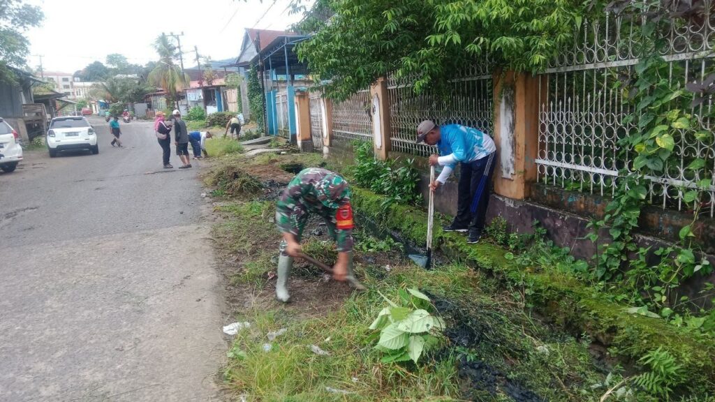 Mamuju- Dalam rangka menjaga kebersihan lingkungan serta mencegah potensi bencana banjir dan wabah penyakit, Bintara Pembina Desa (Babinsa) Koramil 1418-01/Mamuju bersama masyarakat setempat melaksanakan kegiatan karya bakti dengan membersihkan pinggir jalan di Jalan Kelapa, Lingkungan Kasiwa Timur, Kelurahan Binanga, Kabupaten Mamuju. Rabu (7/5/2025).