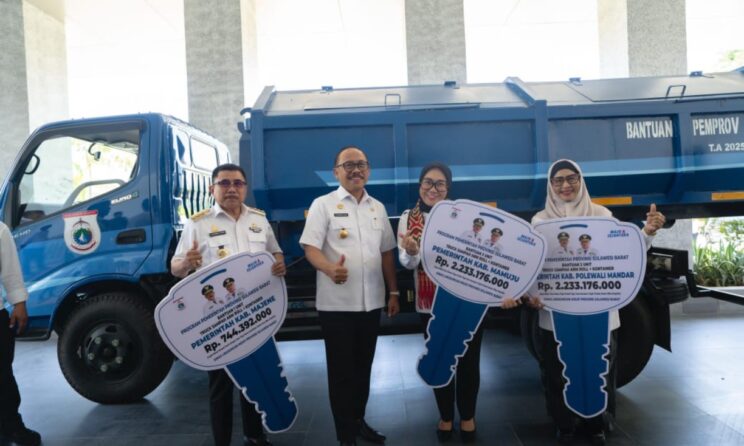 MAMUJU, — Gubernur Sulbar Suhardi Duka menyerahkan Truk Sampah kepada Pemkab Mamuju, Majene dan Polewali Mandar. Penyerahan berlangsung di Kantor Gubernur Sulbar, dan diterima oleh Bupati Majene Andi Achmad Sukri, Bupati Mamuju Sutinah Suhardi dan Wakil Bupati Polewali Mandar Andi Nursami Masdar, Rabu 15 Oktober 2025.