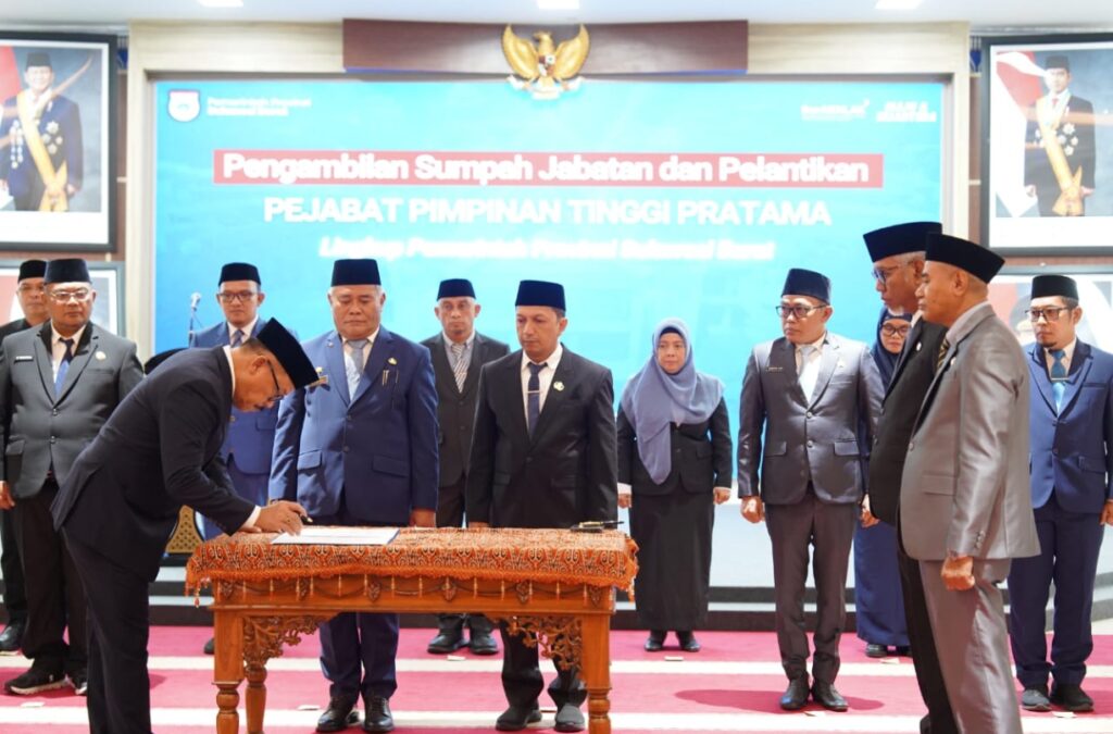 MAMUJU, SULBAR INFO – Gubernur Sulbar, Suhardi Duka (SDK) resmi melantik dan mengambil sumpah 10 Pejabat Pimpinan Tinggi Pratama lingkup Pemerintah Provinsi Sulawesi Barat. Pelantikan digelar di Ballroom Kantor Gubernur Sulbar, Jumat, 19 Desember 2025.