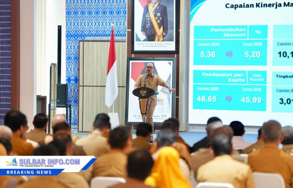MAMUJU, SULBAR INFO – Gubernur Sulawesi Barat, Suhardi Duka, mengenang almarhum Wakil Gubernur Sulbar Mayjen TNI (Purn) Salim S. Mengga dalam Forum Konsultasi Publik Rancangan Awal Rencana Kerja Pemerintah Daerah (RKPD) Tahun 2027 yang digelar di Ballroom Andi Depu, Kantor Gubernur Sulbar, Senin, 9 Februari 2026.