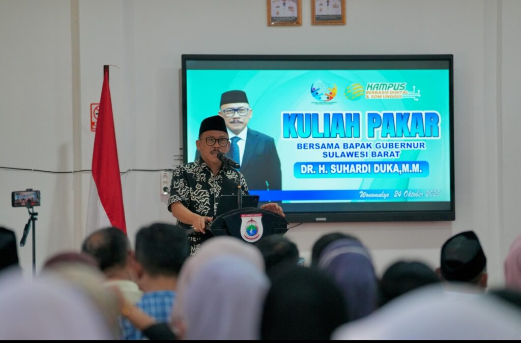 Polman — Gubernur Sulbar, Suhardi Duka (SDK), menegaskan pentingnya sistem pendidikan yang link and match dengan kebutuhan dunia kerja. Hal itu disampaikan SDK saat menjadi pembicara dalam kuliah pakar di Kampus Institut Hasan Sulur (IHS) Wonomulyo, Kabupaten Polewali Mandar, Jumat 24 Oktober 2025.