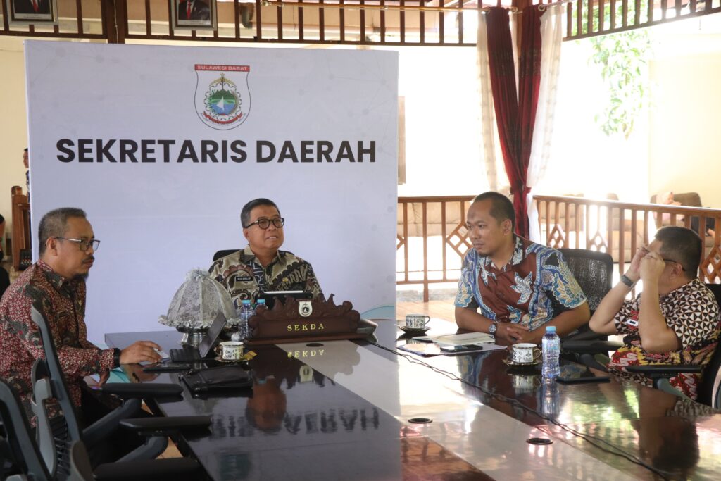 Mamuju – Sekprov Sulbar, Muhammad Idris mengikuti arahan Mendagri Tito Karnavian dalam pelaksanaan Pilkada serentak 2024 secara virtual di Rujab Sekprov Sulbar, Kamis 20 Juni 2024.