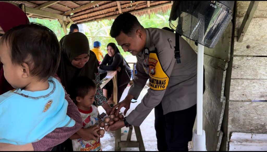 MAMUJU — Menjadi Atensi Kapolda Sulbar Irjen Pol Adang Ginanjar hingga Kapolresta Mamuju Kombes Pol Iskandar, kembali Bhabinkamtibmas desa saletto Brigpol Riefky Dj Al Idrus, melaksanakan salah satu program kerja Yaitu “ONE DAY ONE EGG”.
