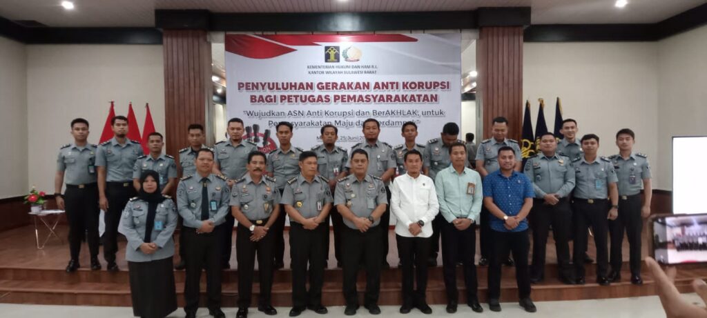 Mamuju – Kantor Wilayah Kementerian Hukum dan HAM Sulawesi Barat melaksanakan kegiatan Penyuluhan Gerakan Anti Korupsi Bagi Petugas Pemasyarakatan, Selasa (25/6/2024).