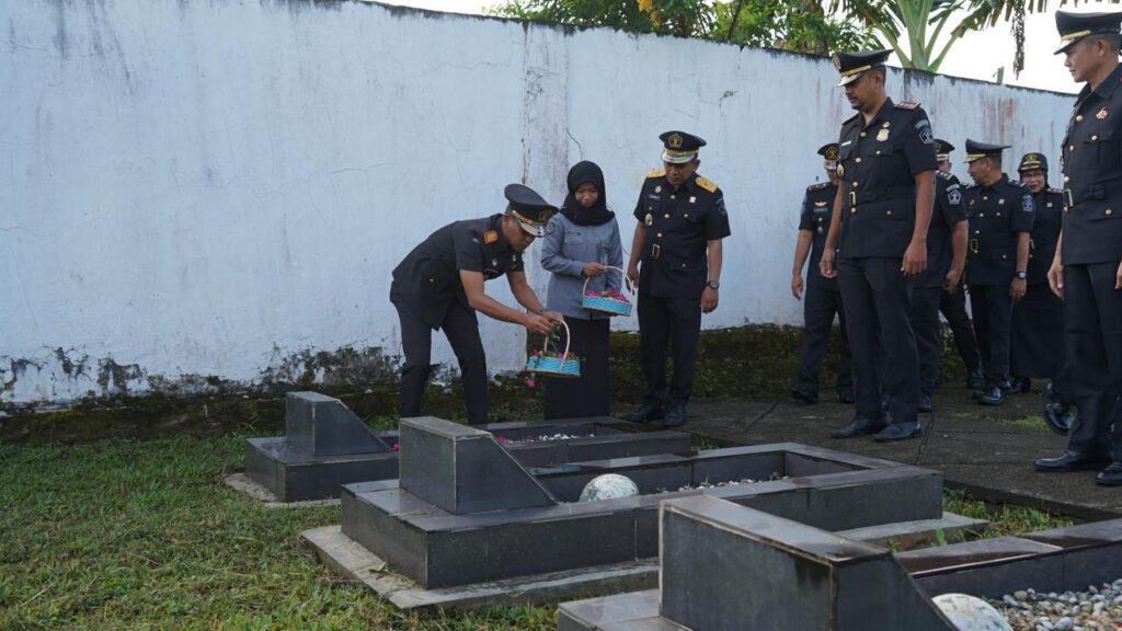 Mamuju – Kepala Kantor Wilayah Kementerian Hukum Sulawesi Barat, Sunu Tedy Maranto mengikuti Upacara Penghormatan dan tabur bunga di Taman Makam Pahlawan Patidi yang digelar oleh Kantor Imigrasi Mamuju, Kamis (23/1/2025).