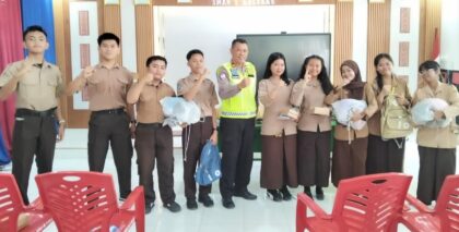 Selain memberikan materi edukasi, kegiatan ini juga diisi dengan pembagian pulpen, buku, helm, tas sekolah, serta brosur himbauan keselamatan berlalu lintas kepada para siswa sebagai bentuk dukungan dan motivasi untuk selalu mengutamakan keselamatan di jalan.