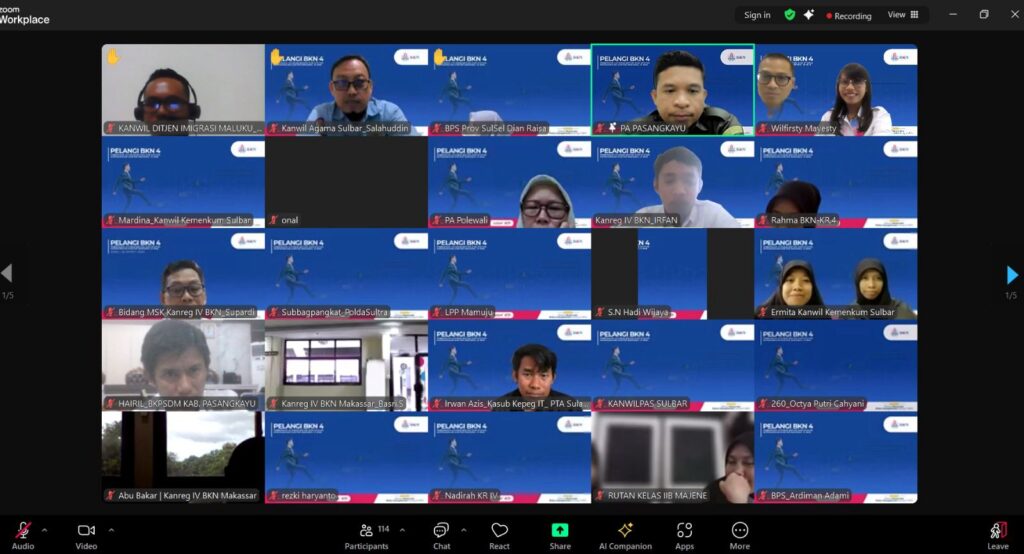 Kegiatan yang fokus pada permasalahan kenaikan pangkat di wilayah kerja Kantor Regional IV BKN Makassar ini dilaksanakan secara virtual pada hari Rabu, 16 April 2025, mulai pukul 09.00 WITA hingga selesai.