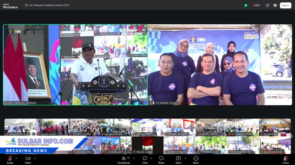“Kanwil Kemenkum Sulbar berkomitmen terus mendorong edukasi, fasilitasi, dan pelayanan KI kepada masyarakat agar semakin banyak karya dan usaha daerah yang terlindungi secara hukum,” ujar Saefur Rochim usai menghadiri Pelayanan KI Serentak pada Peringatan Hari KI Sedunia di Car Free Day, Minggu (26/4/2026), yang dilaksanakan secara virtual melalui Zoom Meeting.