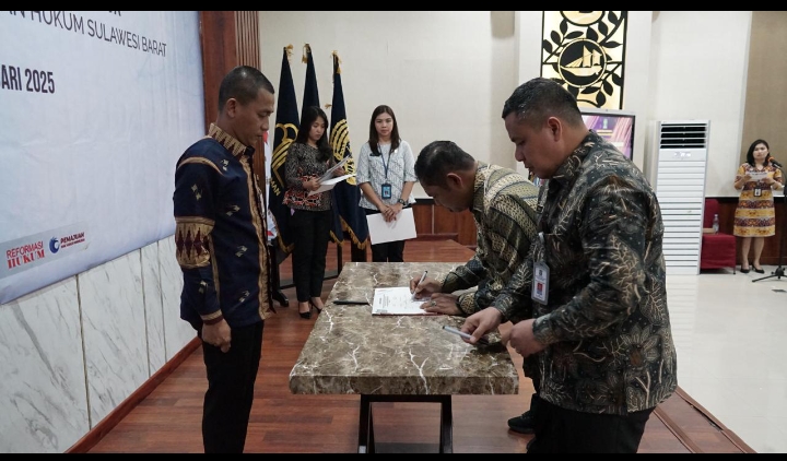 Mamuju – Kanwil Kemenkum Sulawesi Barat menggelar penandatanganan perjanjian kinerja yang dirangkaikan dengan penandatangan komitmen bersama pembangunan Zona Integritas menuju Wilayah Bebas dari Korupsi (WBK) dan Wilayah Birokrasi Bersih & Melayani (WBBM) Tahun 2025.