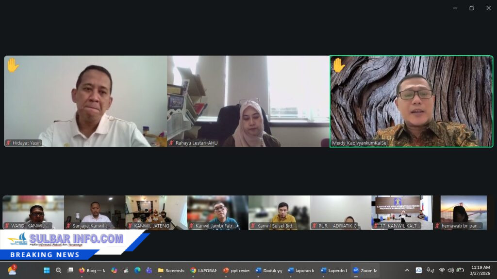 Sebagai bentuk dukungan terhadap kebijakan nasional, Bidang Pelayanan AHU Kanwil Kemenkum Sulbar mengikuti Webinar Verifikasi Matriks Komitmen Target Mandiri dan Kesiapan Operasional AHU Link Pendaftaran Perseroan Perorangan Tahun 2026 yang dilaksanakan secara daring, Jumat (27/3/2026).