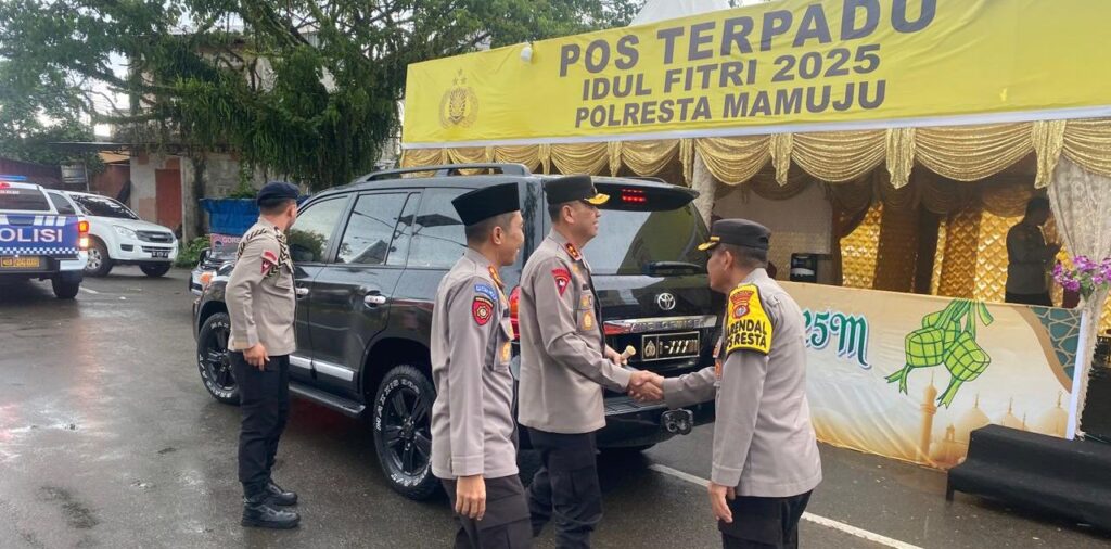 MAMUJU, SULBAR INFO, Sulbar – Di tengah hujan gerimis, Kapolda Sulawesi Barat Irjen Pol Adang Ginanjar, didampingi Kapolresta Mamuju Kombes Pol Ardi Sutriono, meninjau sejumlah pos pengamanan dan pelayanan dalam rangka Operasi Ketupat Marano 2025 di Kota Mamuju, Selasa (25/3/2025).