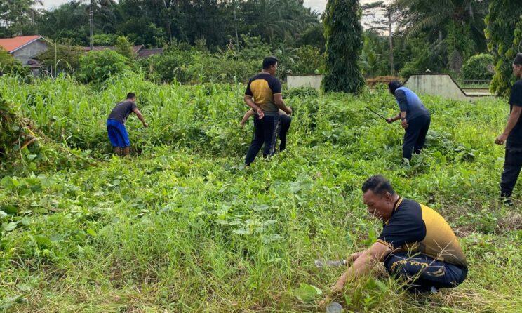Dalam kegiatan tersebut, Kapolsek bersama personelnya membabat rumput ilalang yang sudah mulai meninggi di sekitar halaman mako.