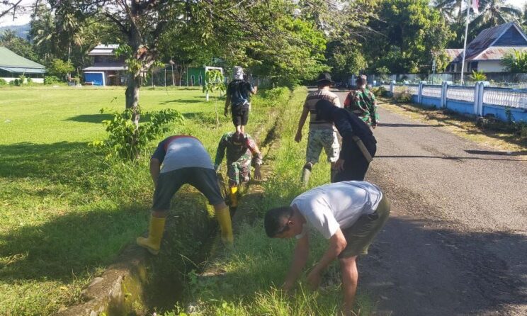 Karya bakti ini melibatkan personel TNI dan masyarakat setempat, yang bahu-membahu membersihkan lumpur, sampah plastik, dan material lainnya yang menyumbat saluran air. Partisipasi aktif warga menjadi bukti nyata kebersamaan dalam menjaga kebersihan dan kenyamanan desa mereka.