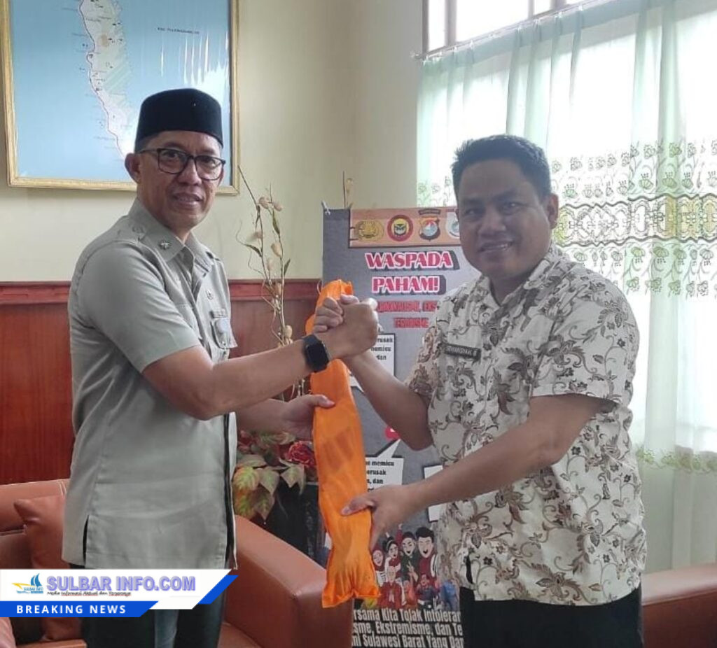 Majene — Kepala Badan Kesatuan Bangsa dan Politik (Kesbangpol) Provinsi Sulawesi Barat, Darwis Damir, mengunjungi Kantor Badan Kesbangpol Kabupaten Majene pada Kamis, 12 Maret 2026. Dalam kunjungan tersebut, Darwis menyerahkan banner sosialisasi kepada Kepala Badan Kesbangpol Kabupaten Majene, Irwansyah, sebagai bagian dari upaya edukasi publik mengenai bahaya paham intoleransi dan radikalisme.