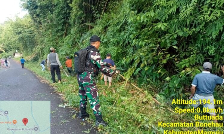 MAMUJU — Personel Koramil 1418-05/Kalumpang kembali menunjukkan komitmennya dalam menjaga kebersihan dan kesehatan lingkungan dengan melaksanakan karya bakti pembersihan pinggir jalan di Desa Bonehau, Kecamatan Bonehau, Kabupaten Mamuju. Minggu (15/6/2025).