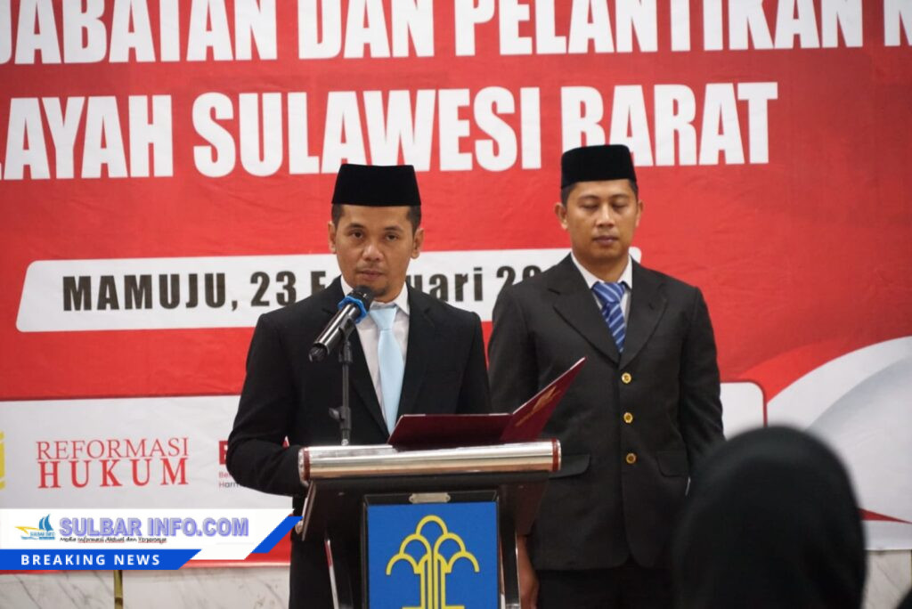 MAMUJU – Kakanwil Kemenkum Sulbar, Saefur Rochim melantik dan mengambil sumpah jabatan 9 (Sembilan) orang Notaris baru di wilayah Provinsi Sulawesi Barat di Aula Pengayoman, Senin (23/2/2026).