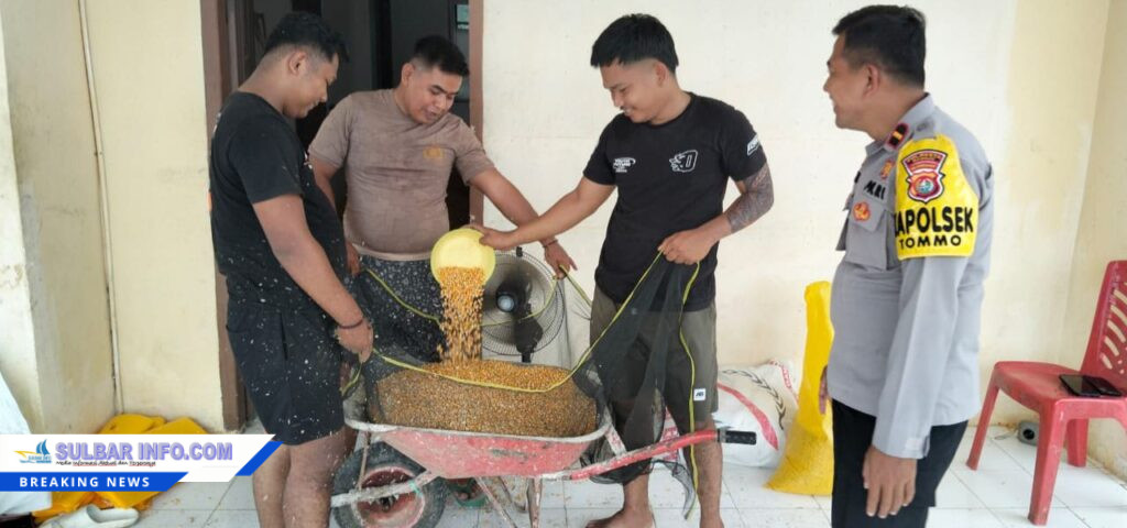 Mamuju — Sebagai upaya mendukung ketahanan pangan dan memaksimalkan serapan jagung petani ke Bulog, Polsek Tommo Polresta Mamuju bantu petani jagung dalam proses pengeringan hasil panen hingga mencapai kadar air 13 persen, sesuai standar yang telah ditetapkan.