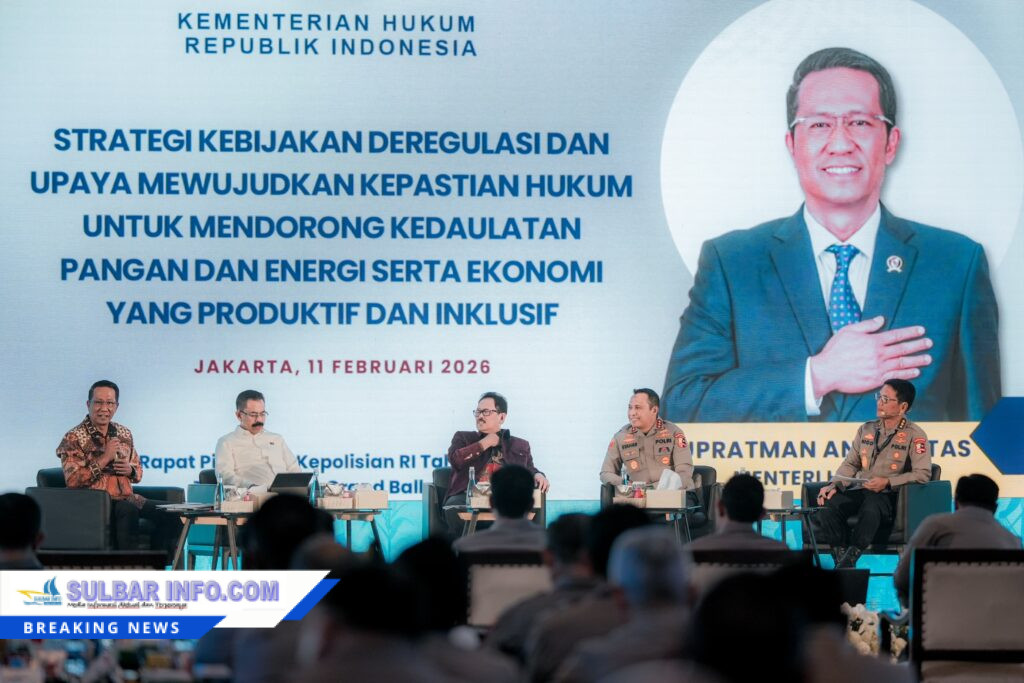 “KUHP dan KUHAP yang baru akan meningkatkan kepastian hukum dalam kedaulatan pangan dan energi, serta ekonomi yang produktif dan inklusif,” ujar Supratman di Rapat Pimpinan (Rapim) Polri Tahun 2026 di Grand Krakatau Ballroom, Jakarta, Rabu (11/02/2026).