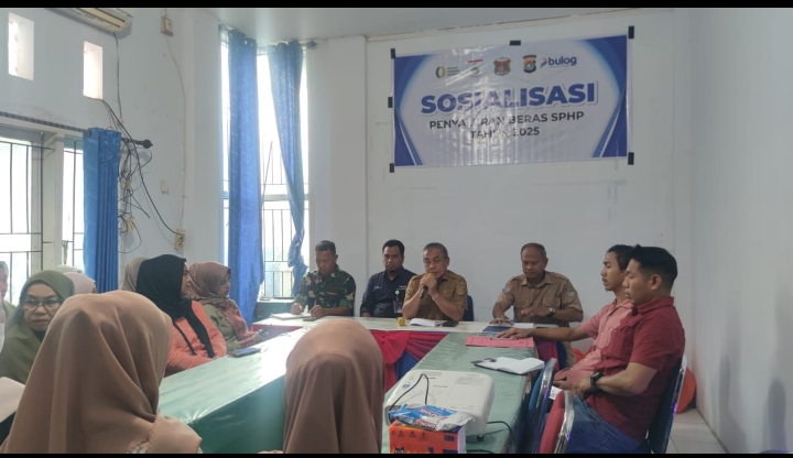 MAMUJU, SULBAR INFO- Dinas Ketahanan Pangan Sulbar, Distapang Mamuju, Bulog Mamuju, Satgas Pangan dan Kodim Mamuju melaksanakan sosialisasi penyaluran beras Program Stabilisasi Pasokan dan Harga Pangan (SPHP) ke pedagang, Selasa 15 Juli 2025.