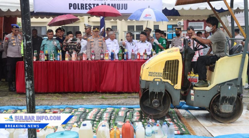 MAMUJU – Komitmen tegas menjaga keamanan dan ketertiban selama bulan suci Ramadan kembali dibuktikan Polresta Mamuju. Sebanyak 1.435 botol minuman keras (miras) beralkohol dan hampir 200 liter minuman tradisional jenis ballo atau cap tikus dimusnahkan dalam kegiatan yang digelar di halaman Mapolsek Mamuju, Selasa (24/2/2026).