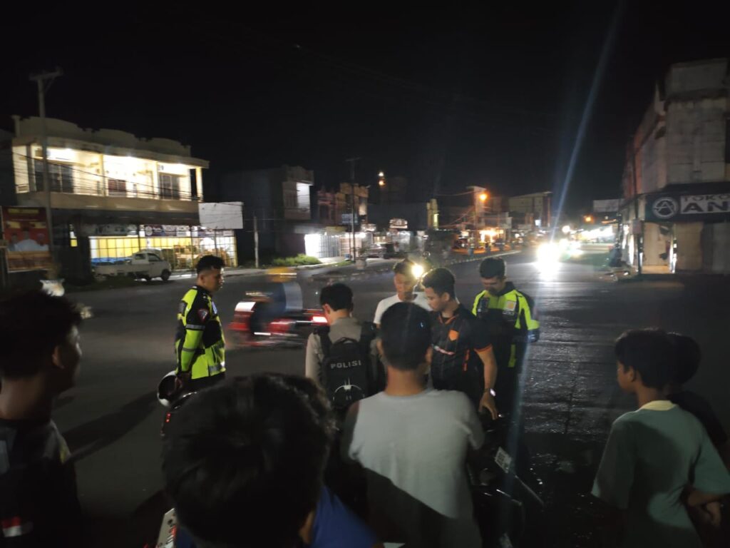 Mamuju – Tim Patmor bersama personel piket Satuan Lalu Lintas (Satlantas) Polresta Mamuju melaksanakan pemantauan dan pengamanan di sejumlah ruas jalan pada hari Minggu dini hari, 18 Januari 2026
